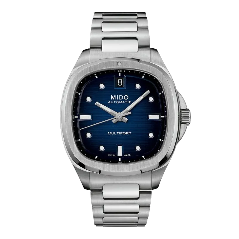 El MIDO Multifort TV M049.307.11.041.00 es una declaración de estilo y precisión. Inspirado en los televisores retro de los años 70, este reloj automático suizo presenta una caja rectangular de acero inoxidable de 35 x 34.2 mm, con una esfera azul vibrante y cristal de zafiro antirreflejante. Su movimiento Calibre 72 ofrece una impresionante reserva de marcha de 72 horas, ideal para quienes valoran la autonomía y la fiabilidad.