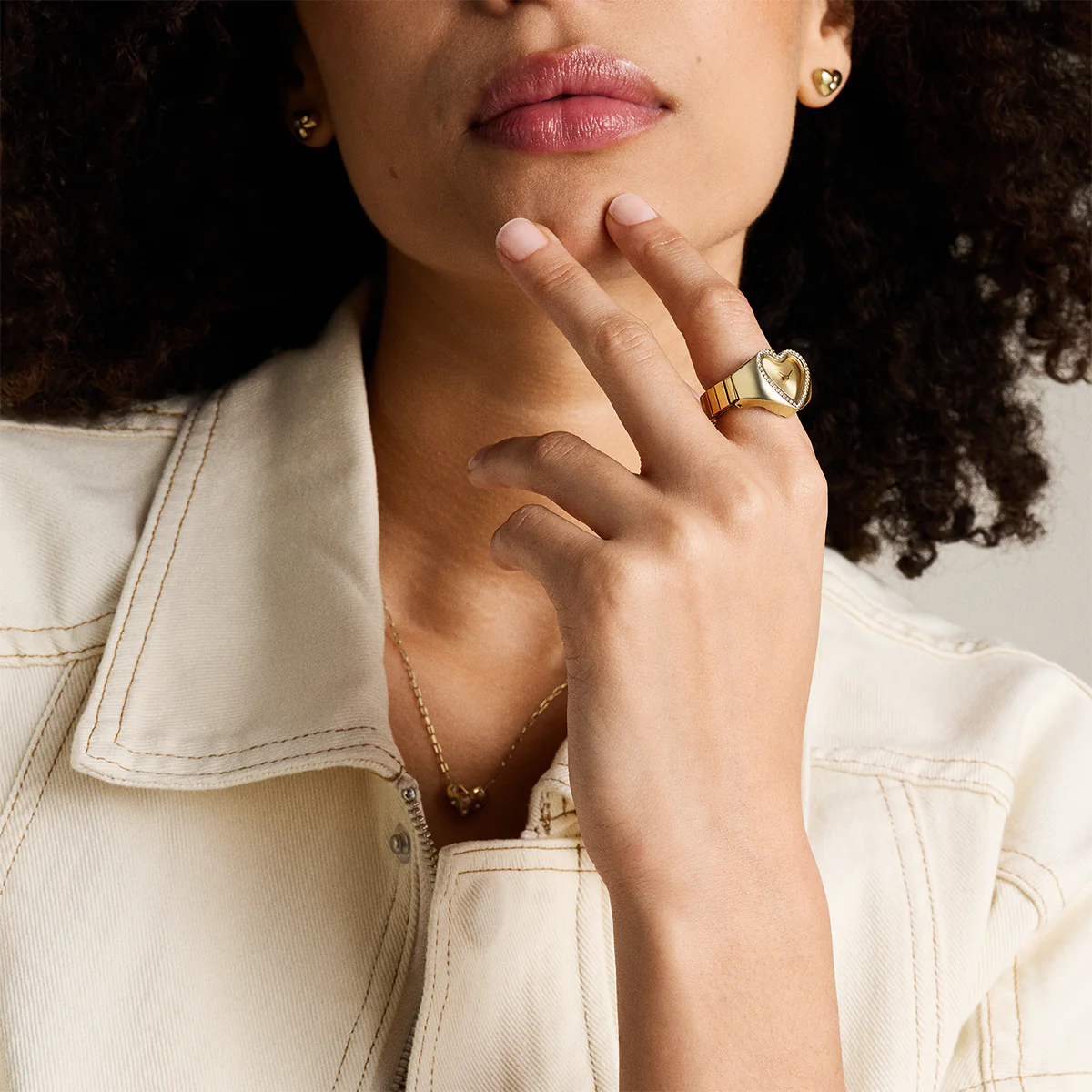 El Fossil ES5407 es mucho más que un reloj: es una pieza de joyería funcional que combina el diseño de un anillo con la precisión de un reloj de pulsera. Este modelo exclusivo de Fossil está pensado para mujeres que buscan destacar con accesorios únicos, modernos y sofisticados. Fabricado en acero inoxidable dorado, su forma de corazón con incrustaciones de cristales lo convierte en un complemento ideal para ocasiones especiales o para elevar tu look diario. Su esfera dorada con efecto rayos de sol y movimiento de cuarzo con dos agujas garantiza precisión y estilo. La correa elástica se adapta cómodamente a cualquier dedo, ofreciendo versatilidad y ajuste perfecto. Además, cuenta con resistencia al agua de 5 ATM, lo que lo hace funcional y duradero. En Mundo Reloj, te ofrecemos productos originales, asesoría personalizada desde Barranquilla y garantía de calidad. Comprar con nosotros es elegir respaldo, autenticidad y elegancia.