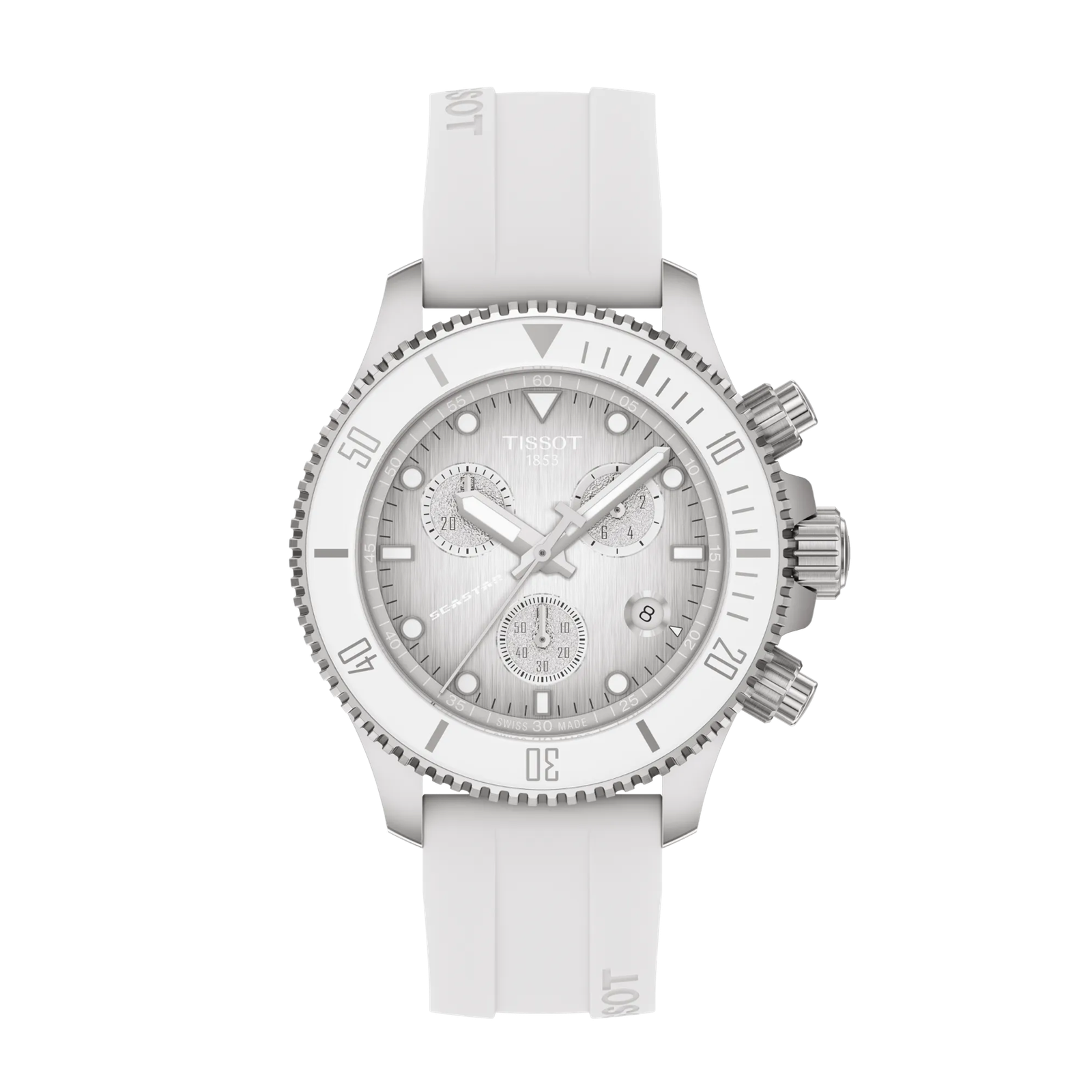 El Tissot Seastar 1000 38mm T120.217.17.011.00 es la fusión perfecta entre elegancia suiza y rendimiento deportivo. Diseñado para quienes buscan un reloj de buceo confiable, este modelo incorpora un cronógrafo de cuarzo suizo, caja de acero inoxidable 316L y resistencia al agua de hasta 300 metros, ideal para aventuras acuáticas y uso diario. Su esfera degradada blanco-gris con cristal de zafiro antirreflejo y correa de silicona blanca lo convierten en un accesorio versátil y sofisticado.